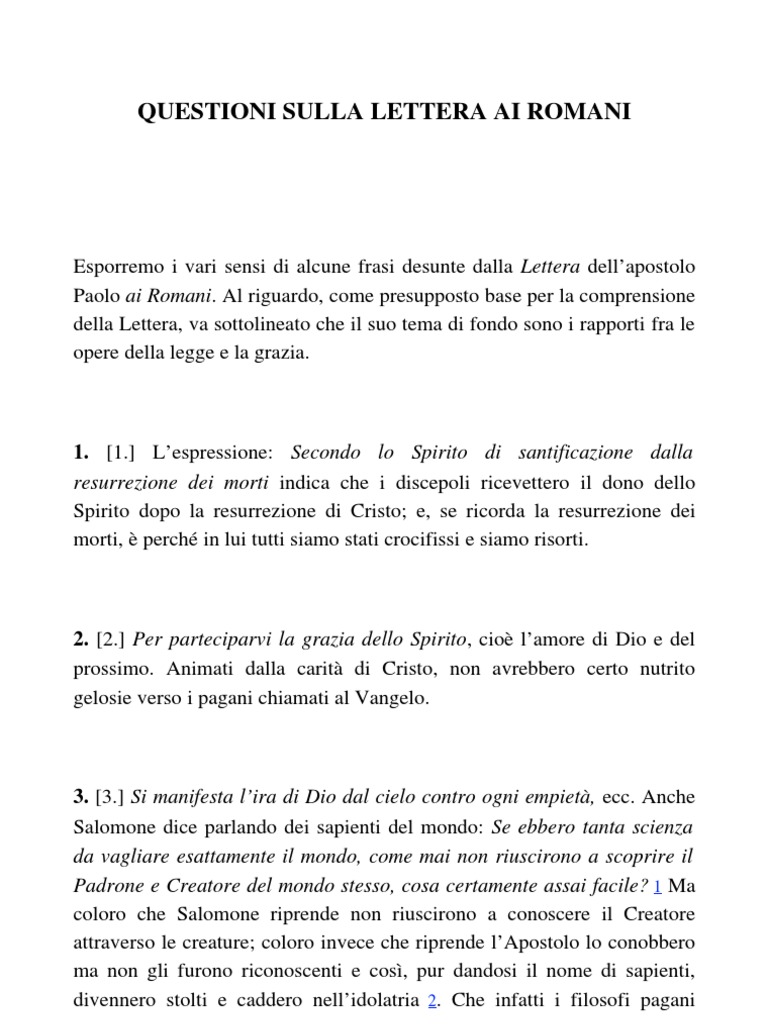 (PDF) LA LETTERA AI ROMANI | Gianni ... - Academia.edu LA LETTERA AI ROMANI. La lettera ai romani, 2019. Gianni Montefameglio. Download Download PDF. Full PDF Package Download Full PDF Package. This Paper. A short summary of this paper. 36 Full PDFs related to this paper. Read Paper. Download Download PDF. Download Full PDF Package.