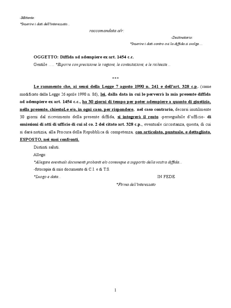 Diffida ad adempiere - cos'è e come scrivere la lettera - effetti Una serie di pratici consigli e raccomandazioni dell'avvocato per poter ... Cos'è; Le norme; La lettera; Come si invia; Quali gli effetti; Fac Simile ...