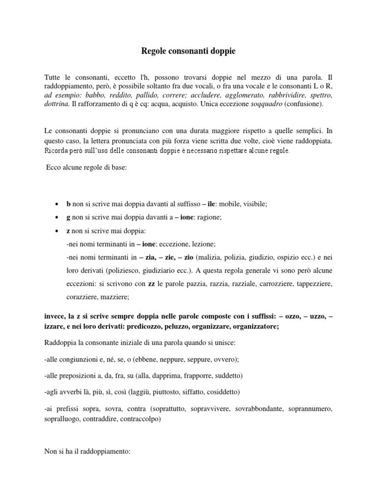 Consonanti doppie: regole per non sbagliare - Studia Rapido Parole con le doppie Ecco alcune regole di base: b non si scrive mai doppia davanti al suffisso - ile: mobile, visibile; g non si scrive mai doppia davanti a - ione: ragione; z non si scrive mai doppia: -nei nomi terminanti in - ione: eccezione, lezione;