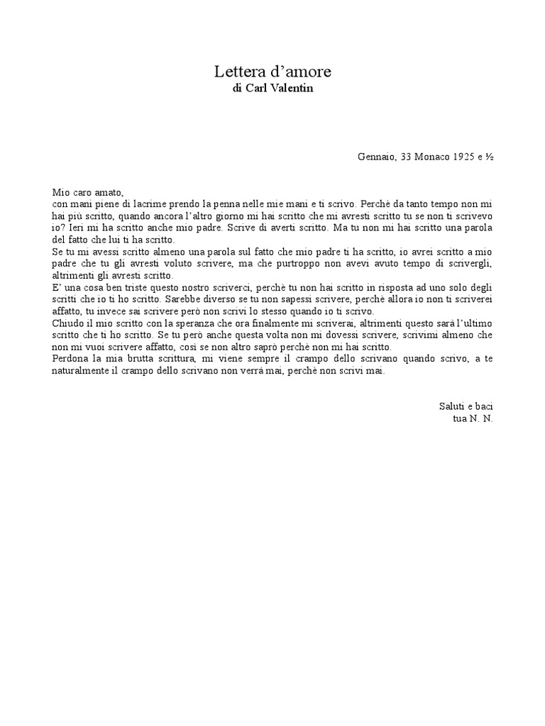 Lettera d'amore di karl valentin