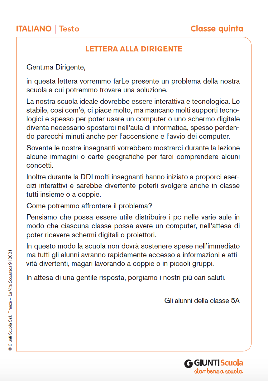 Lettera alla Dirigente | Giunti Scuola