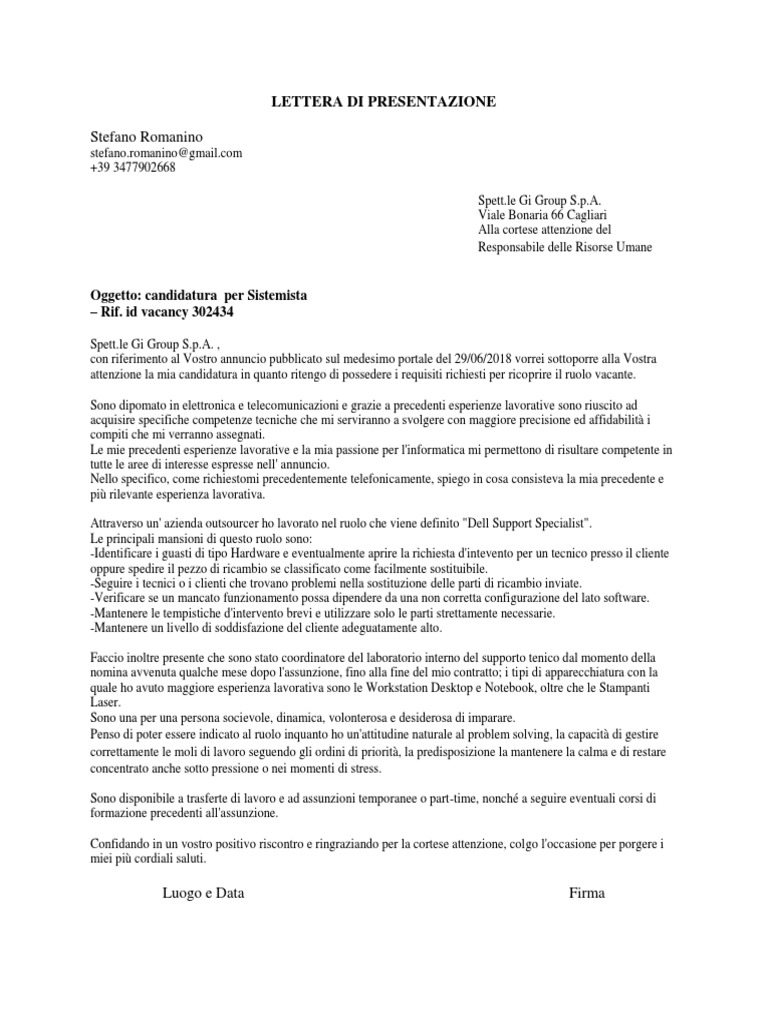 Fac Simile Lettera di Presentazione Risposta Annuncio Ricordatevi che non state chiedendo niente, state soltanto proponendo la vostra eventuale collaborazione ad una azienda o comunque ad un datore di lavoro, per ...