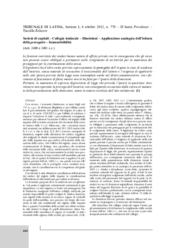 L'EFFICACIA IMMEDIATA DELLE DIMISSIONI DEL SINDACO riconosciuto efficacia immediata alle dimissioni dalla carica di sindaco di società di ... l'integrazione del collegio sindacale con i sindaci supplenti o, ...