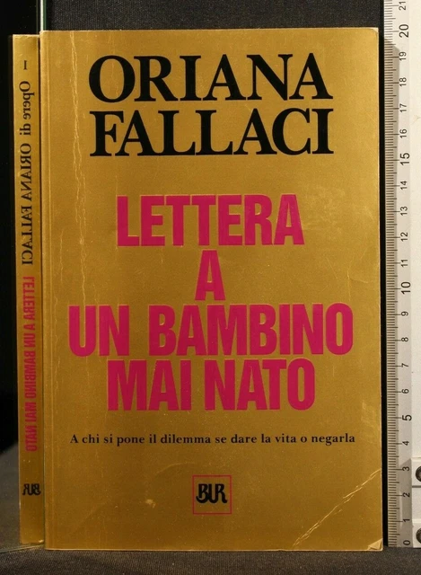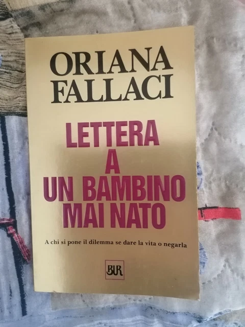 Letter to a Child Never Born - Wikipedia 858/.9/1407. LC Class. PZ4.F192 Le PQ4866.A4. Letter to a Child Never Born ( Italian: Lettera a un bambino mai nato, 1975) is a novel by Italian author and journalist Oriana Fallaci. It is written as a letter by a young professional woman (presumably Fallaci herself) to the fetus she carries in utero; it details the woman's struggle to choose ...