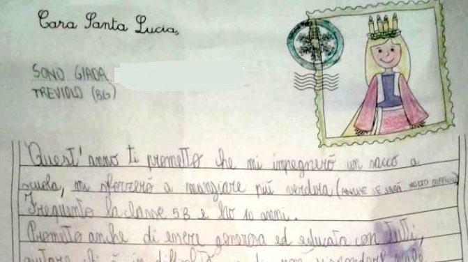 E voi avete scritto la lettera a Santa Lucia? - Olio Turri Un tempo la Santa veniva anche invocata per i mali che potevano colpire la vista. ... con il capo coronato da un intreccio di rami verde e sette candeline, ...